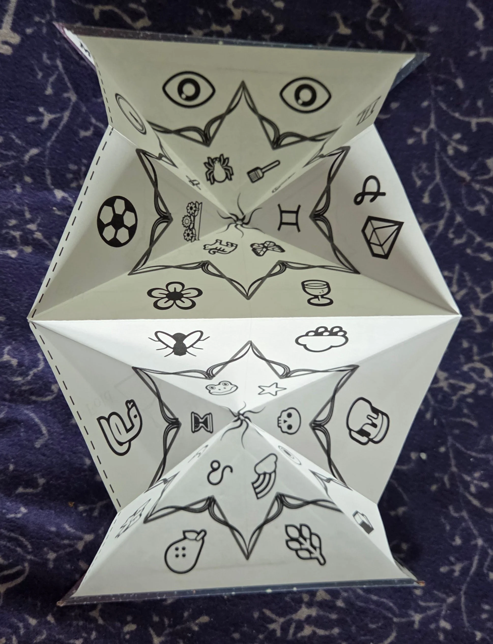 The stars on the side with the glyphs have 8 points, but the stars on the instruction side only have 6. How would you make a 6 sided star using this piece of paper?